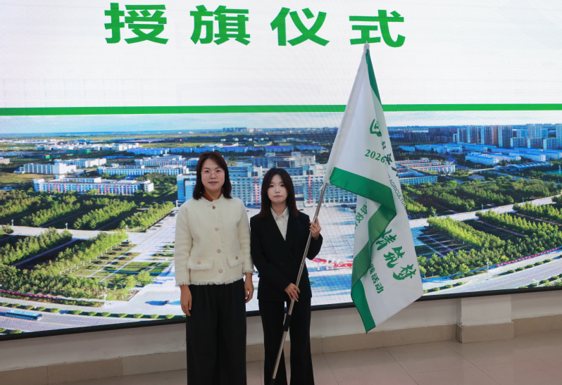 校团委负责人平红为2026年优秀学子母校行招生宣传社会实践总团庄严授旗。这面旗帜象征着荣誉与责任,正式拉开了新一年度招生宣传社会实践活动的序幕。